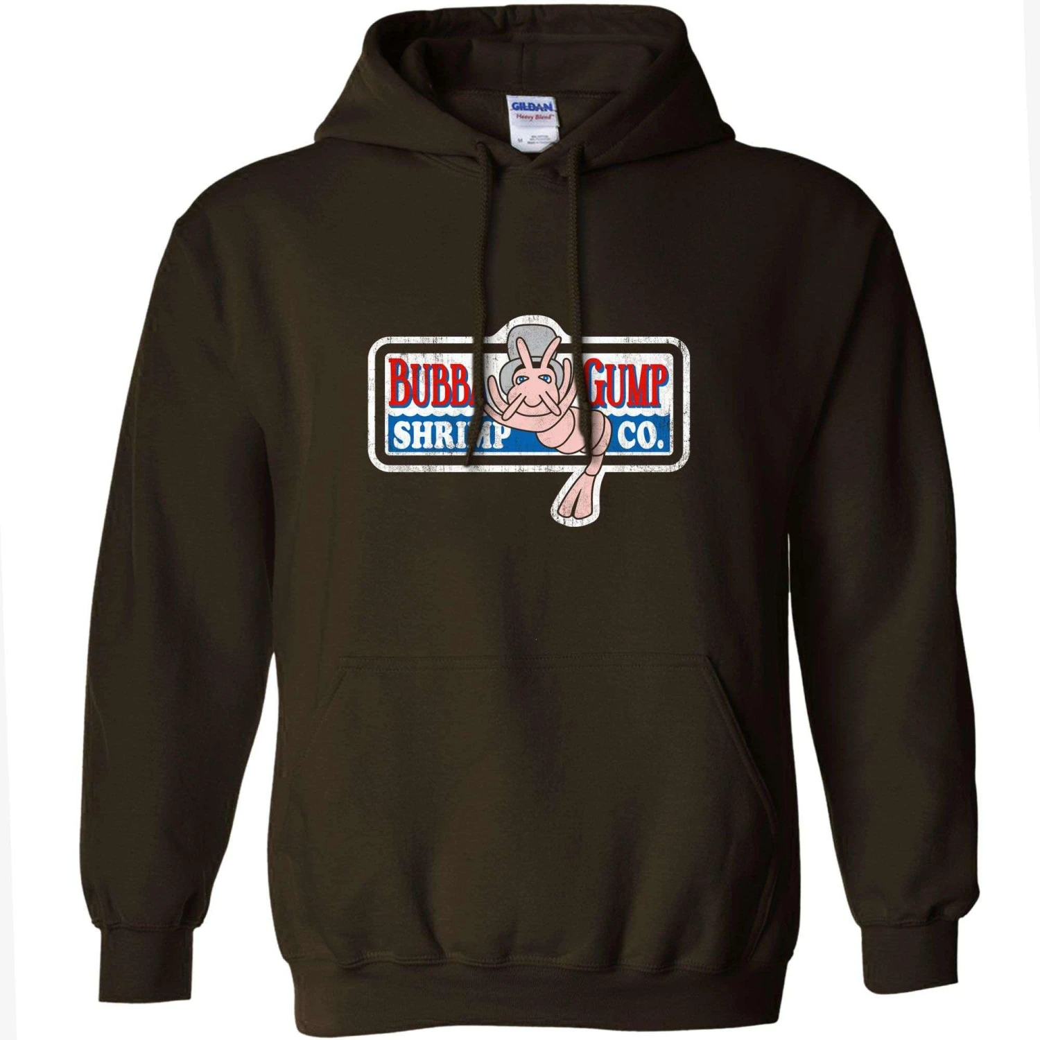 This Forrest Gump inspired hoodie has a retro look, worn print of a Bubba Gump Shrimp Company logo, the company set up by Forrest Gump after he and his friend Benjamin Buford “Bubba” Blue had came up with the idea during the Vietnam war. Although Bubba was killed in action, Forrest honoured him by naming the shrimp business Bubba Gump. Bubba Gump Shrimp Co then became a famous name in America, with both Forrest and Bubba’s families being financially set up for life. Now you can show your appreciation for a classic film with this 50% cotton, 50% polyester Bubba Gump hooded top. This hoodie is made from air jet spun yarn for a softer feel and has a double fabric hood with matching drawstring. Also has a front pouch pocket and rib trim. Inspired by Forrest Gump but not official merchandise.