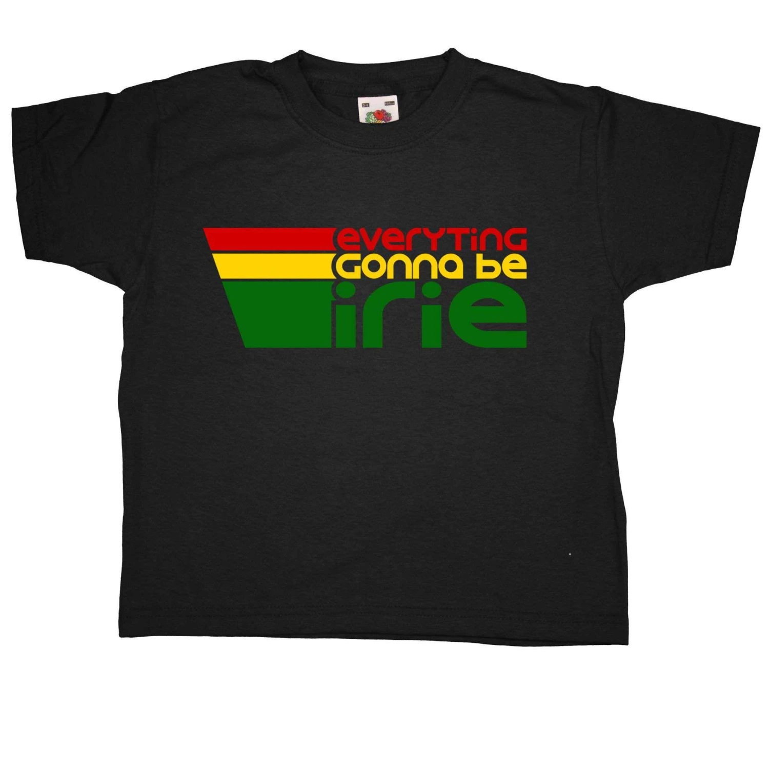 This kids tshirt features the slogan “everyting gonna be irie” in rasta colours. No matter what happens, in the end eveyting will be irie! Even in these pessimistic times our kids always have eternal optomism and this tee shows that off. This is a kids 100% cotton t-shirt with a three colour transfer print.