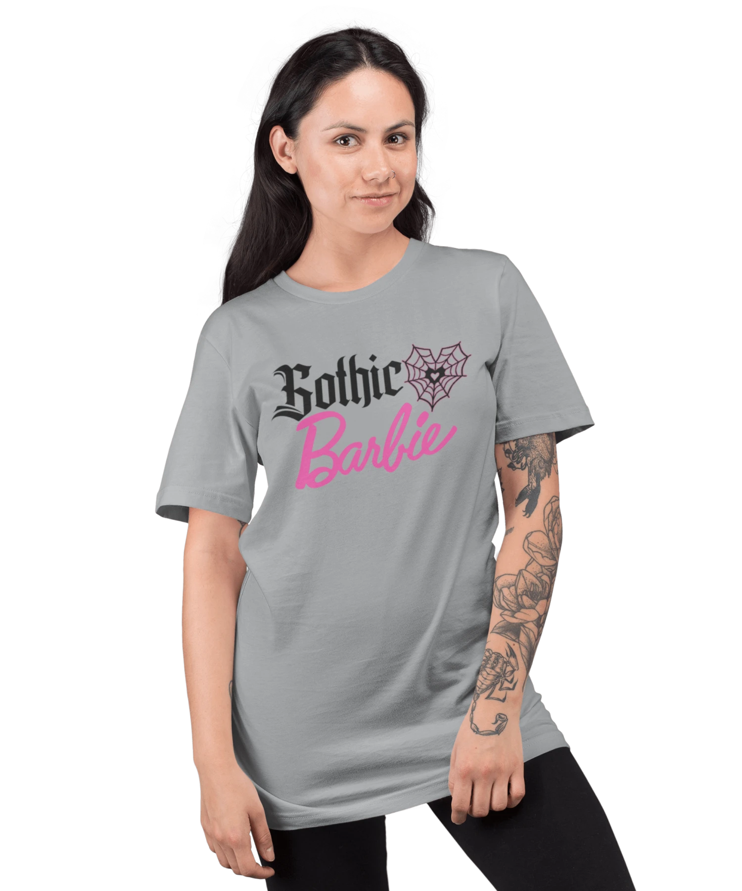 Why not declare your gothic roots with this Gothic Barbie T-Shirt. Perfect for any goths that secretly love the iconic doll. Whether wearing it out on the town or hanging out with friends, this shirt will turn heads. So don’t wait any longer; order your Gothic Barbie T-Shirt today! 100% Cotton.