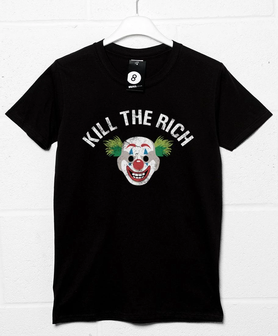 This tee features the slogan ‘Kill the Rich’, which becomes a twisted mantra for people influenced by Arthur Fleck, along with the clown mask worn by employees of the HaHa Clown Company.
