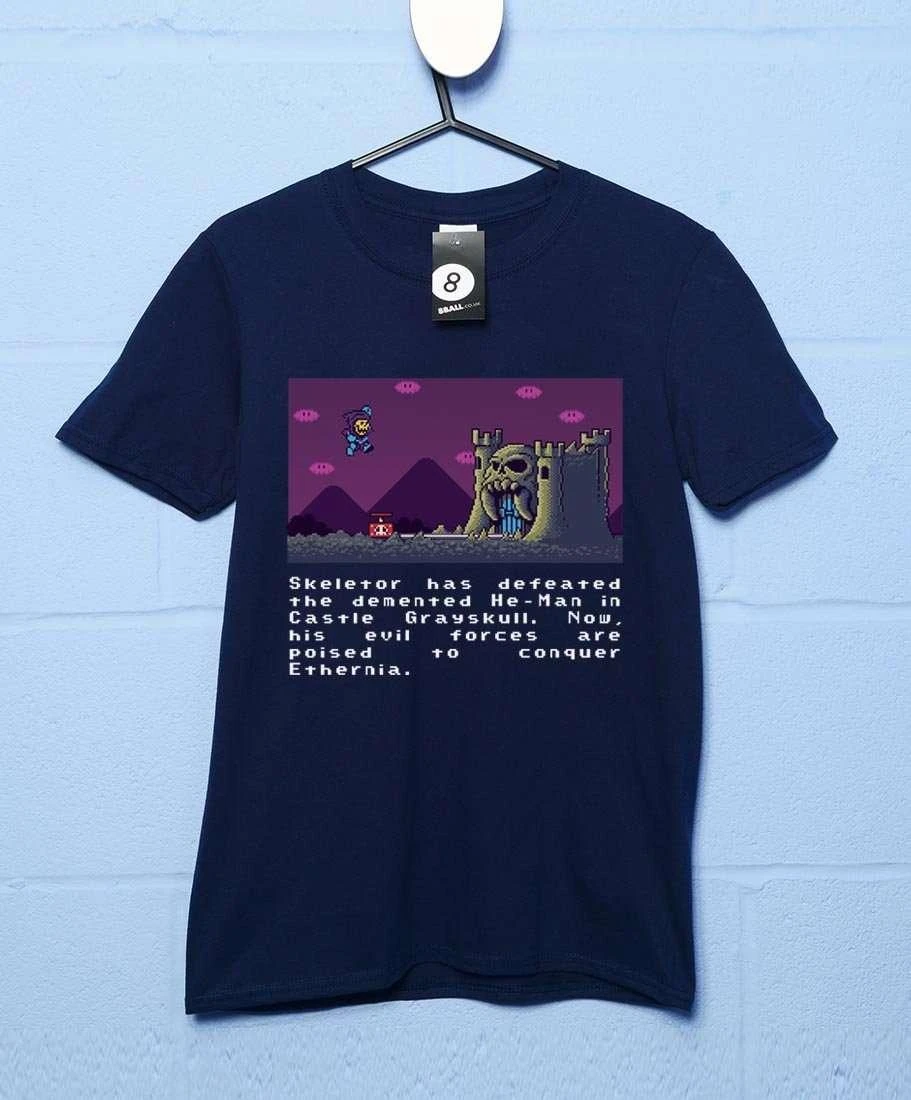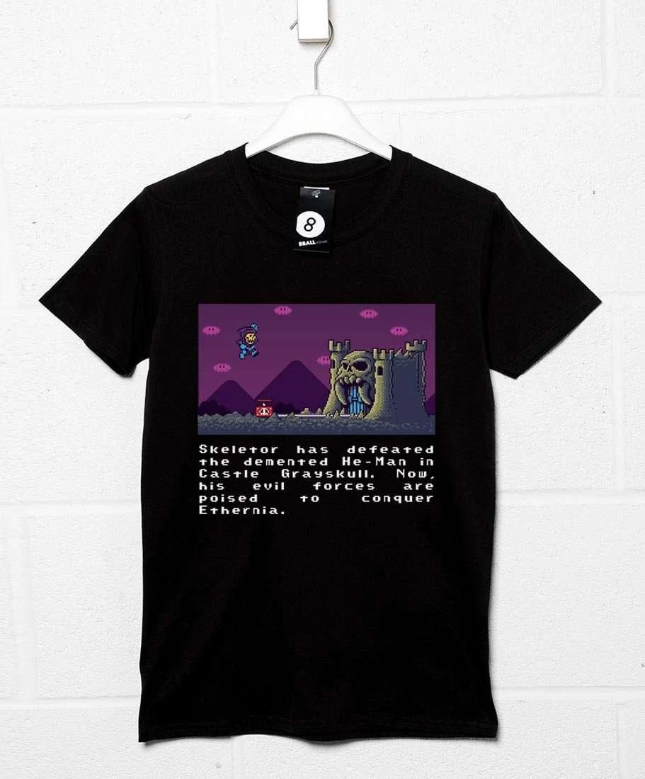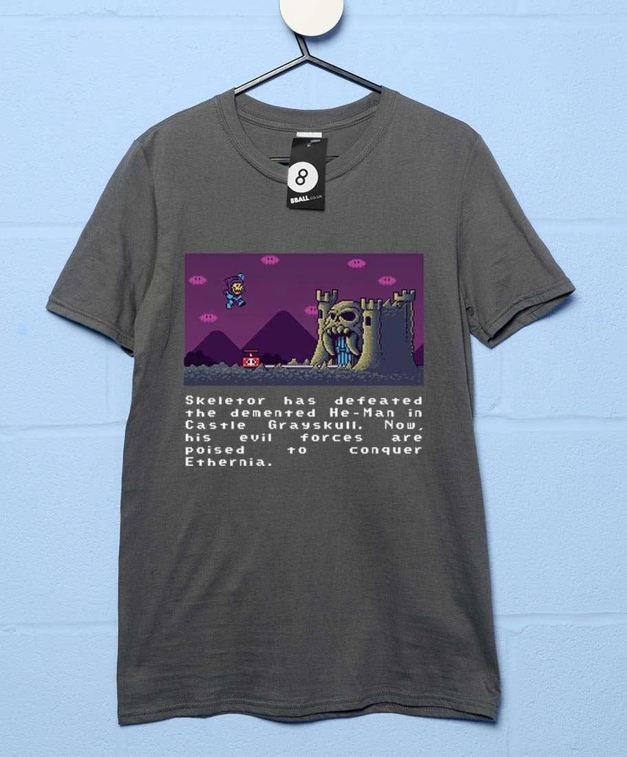 Forget Mario, here we have Super Skeletor! This great Master of the Universe/Super Mario Brothers mash-up t-shirt shows us how the classic Mario game would have looked if He-Man’s bony-faced nemesis had been the title character instead of the mustachioed plumber we are more familiar with. Curse you He-Man!!!!