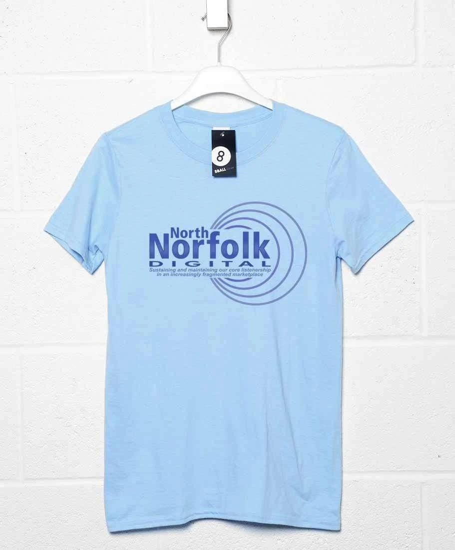 This Alan Partridge homage tee features a TeeVee original version of the logo of North Norfolk Digital – the station which Alan Partridge broadcasts his latest show on – Mid Morning Matters. Also has the slogan “Sustaining and maintaining our core listenership in an increasingly fragmented marketplace” as said by Alan. This is a 100% cotton North Norfolk Digital t shirt, inspired by Alan Partridge’s Mid Morning Matters but not official merchandise.
