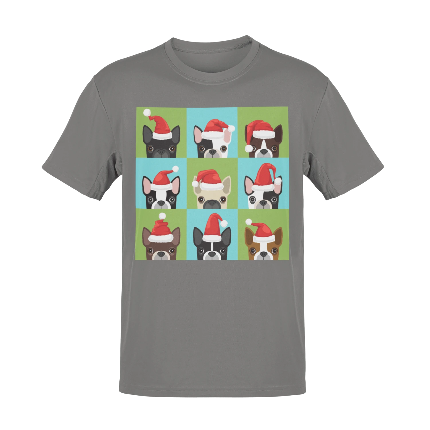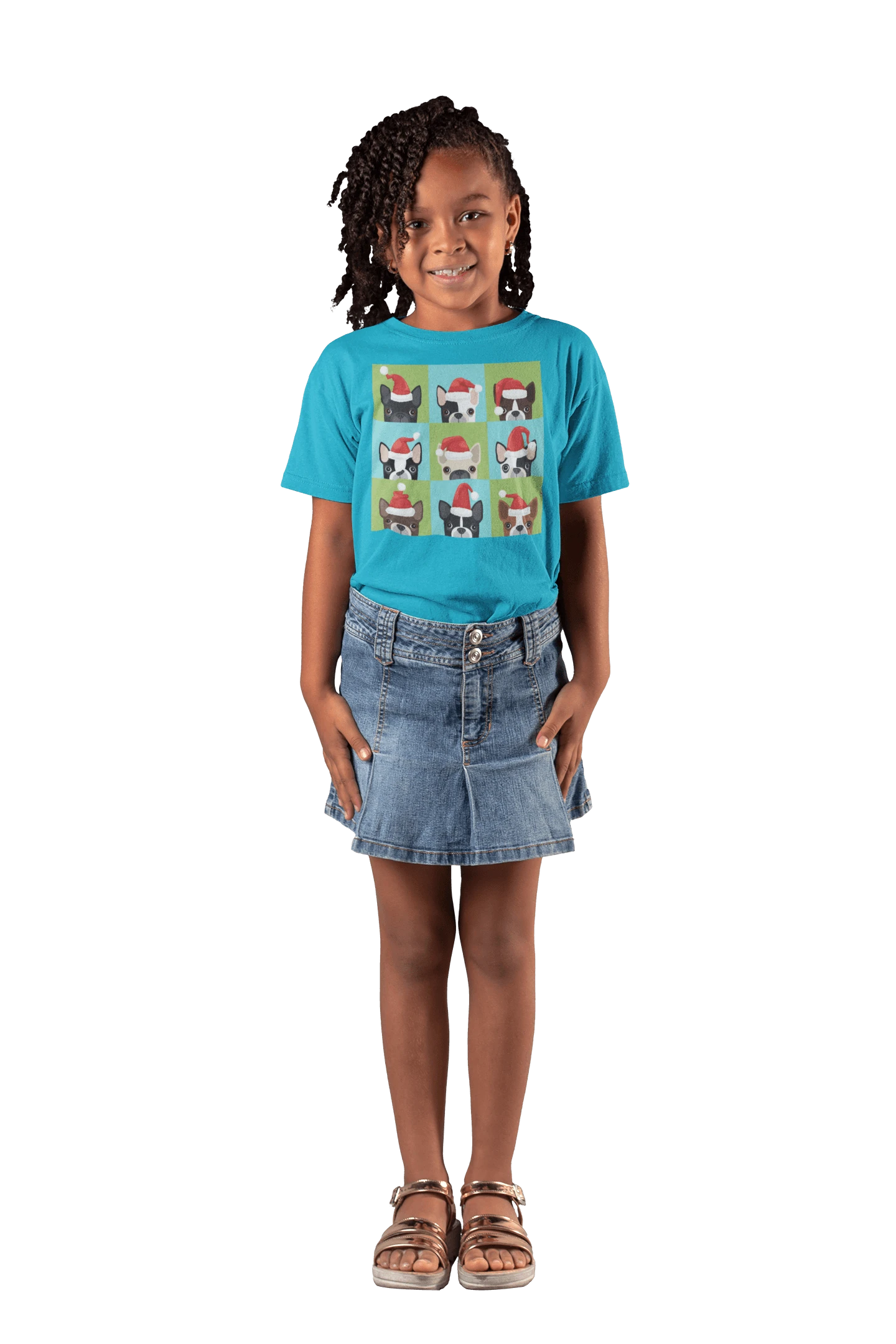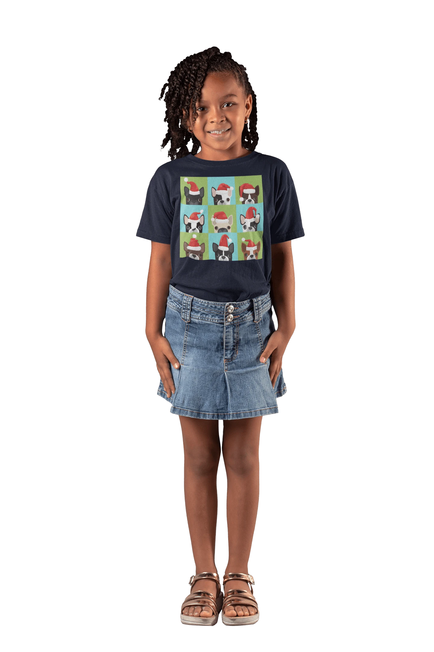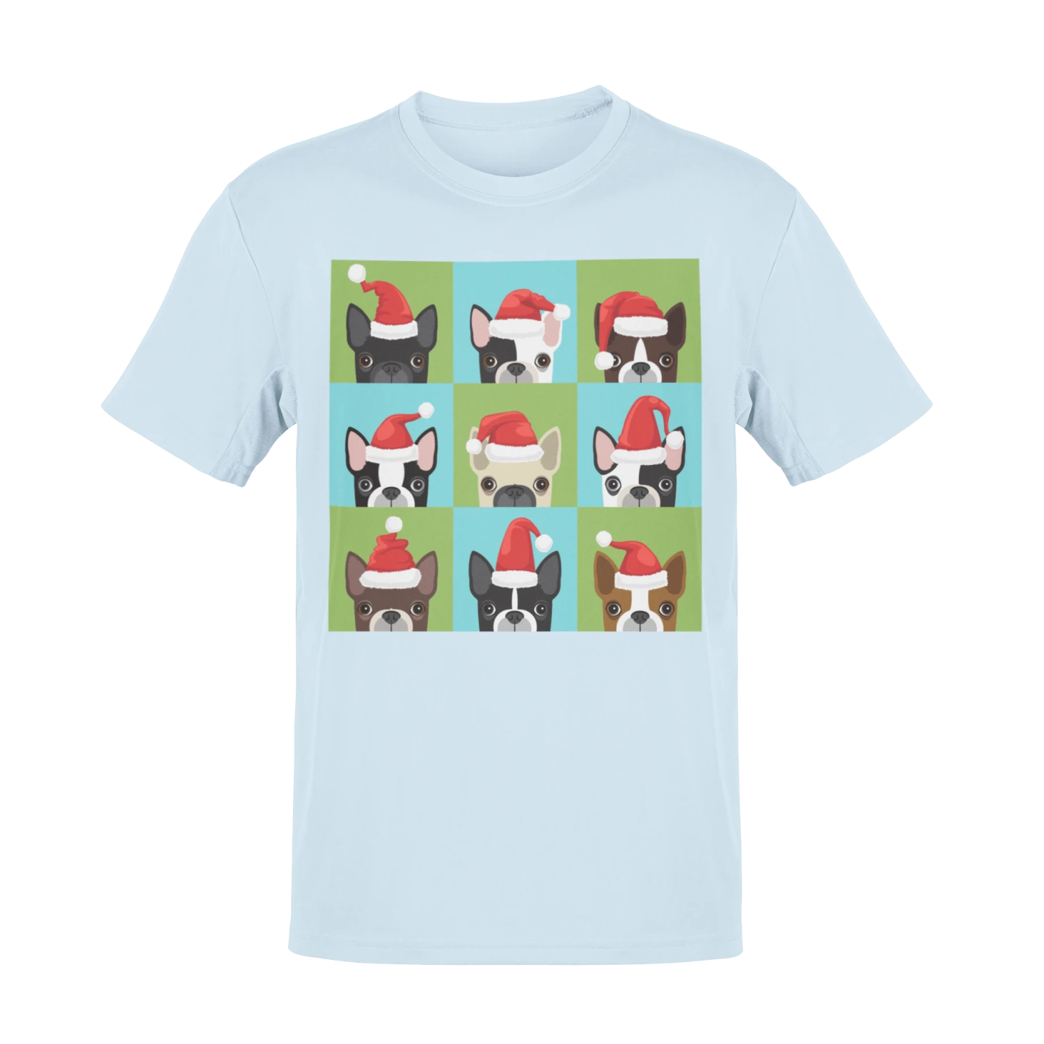 Perfect for the dog-loving pug owner in your life. Exclusive to 8 Ball T-Shirts this Christmas t-shirt design with pugs in Santa hats is fantastic for all children who love their pug.